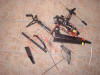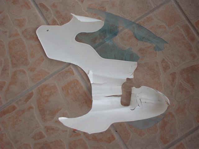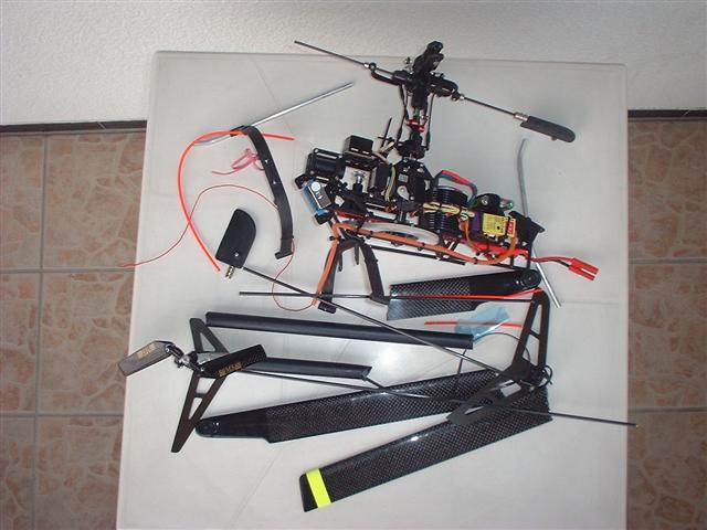 Absturz am 03.05.2006 Gestern traf ich mich, so gegen 16 Uhr mit dem Matthias, auf dem Flugplatz in Straßenheim. Nachdem der Matthias geflogen war, macht ich meinen Eco 8 startklar. Da sich der Eco 8 beim Erstflug schon etwas komisch verhielt, macht ich eine Zwischenlandung. Bis auf das 3fache blinken, des Schulze-Empfängers, konnte ich aber nichts feststellen. Ich habe dann den Empfänger resetet und hob für einen neuen Flug ab. Als ich dann das zweite mal den Platz überflog und eine Rechtskurve im Abstand von ca. 100m einleitete, reagierte der Eco nicht mehr. Da ich eigentlich mit den Flugeigenschaften des Eco 8 sehr zufrieden war, werde ich ihn bestimmt wieder neu aufbauen. Das ist der Eco 8 nach dem Absturz.